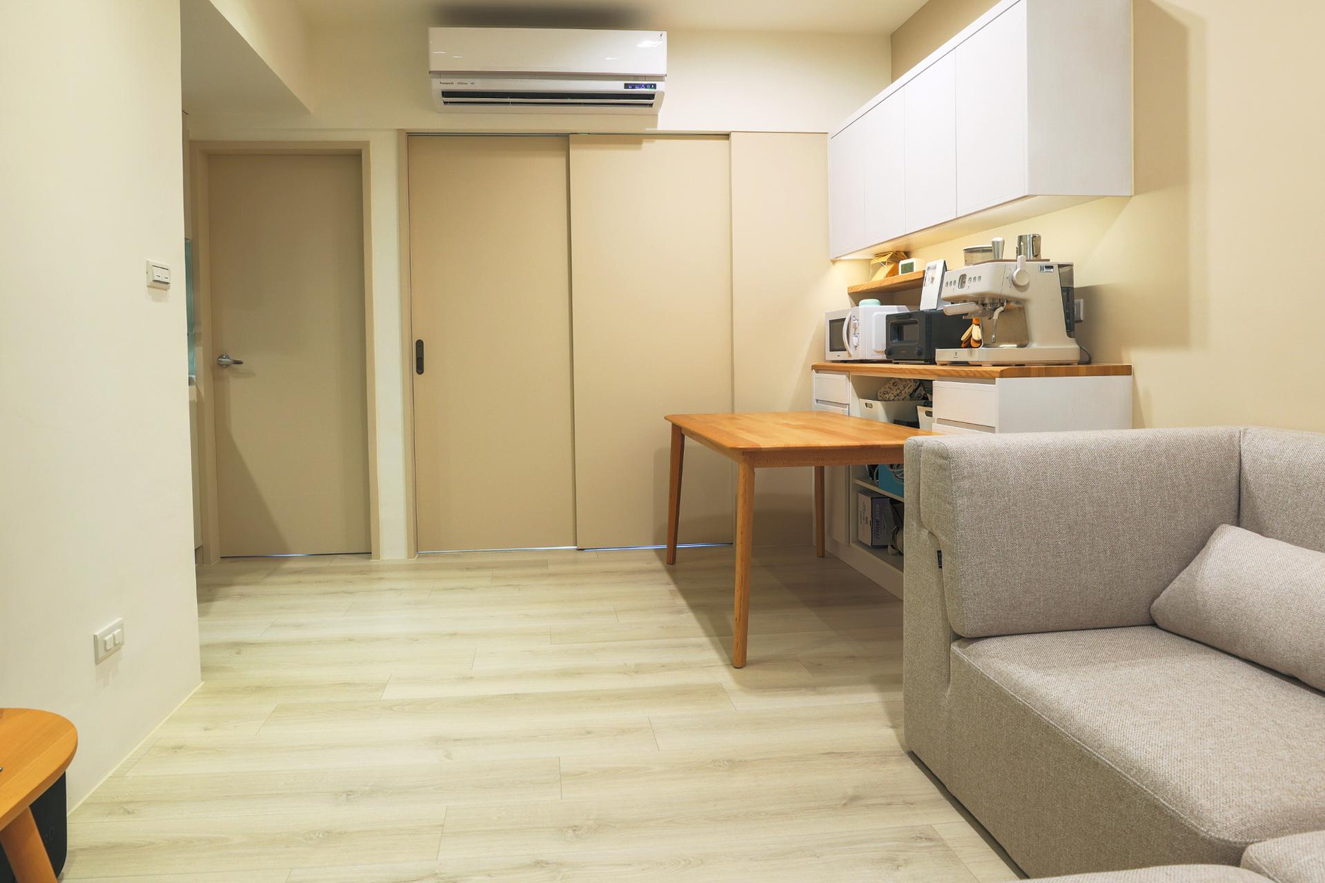 色彩計畫 | 白、自然木色、洗白色、跳色牆(淺灰)