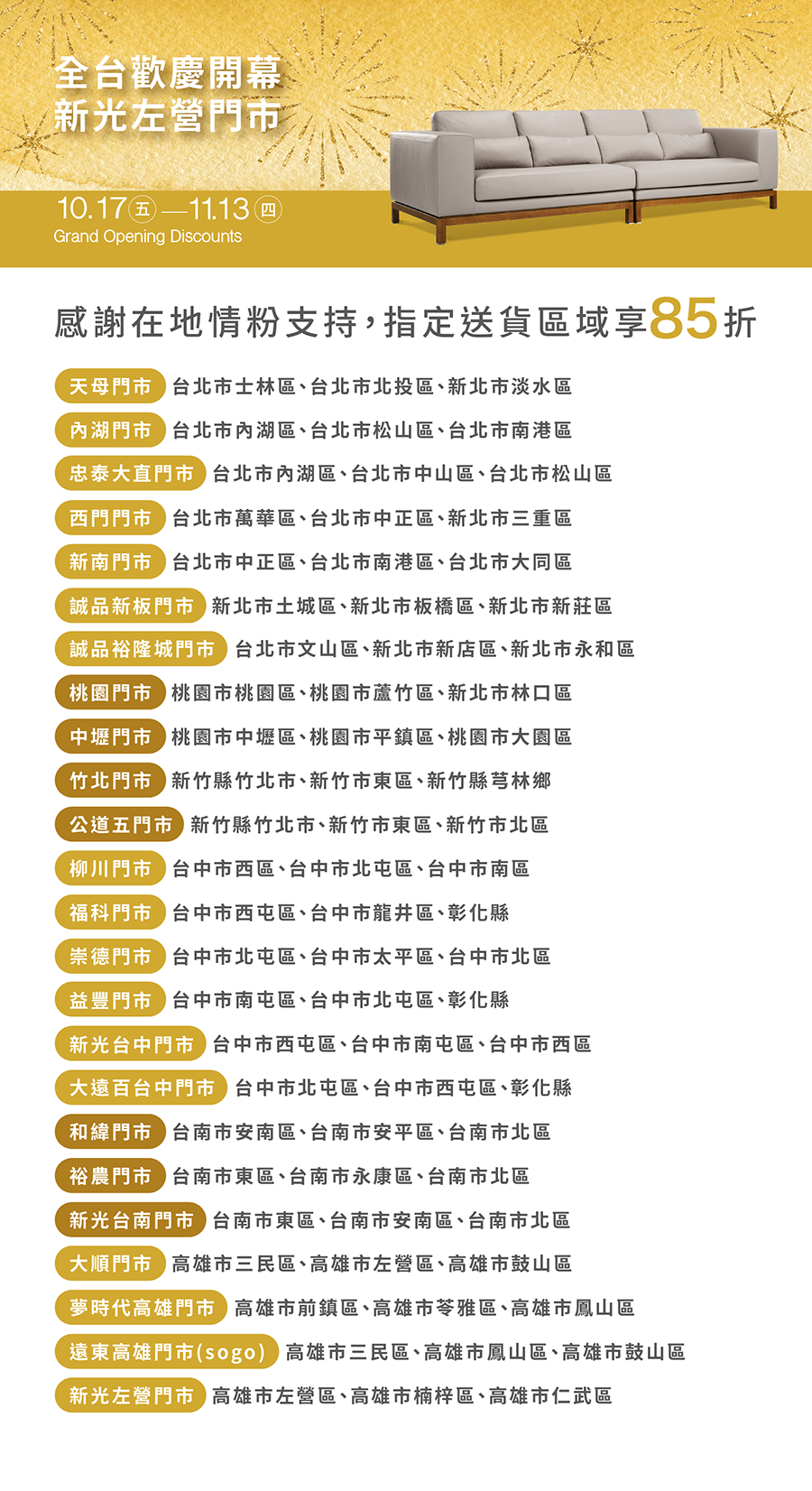5.全台各門市之指定送貨區域及活動詳細內容請洽服務人員,有情門保有活動解釋權。