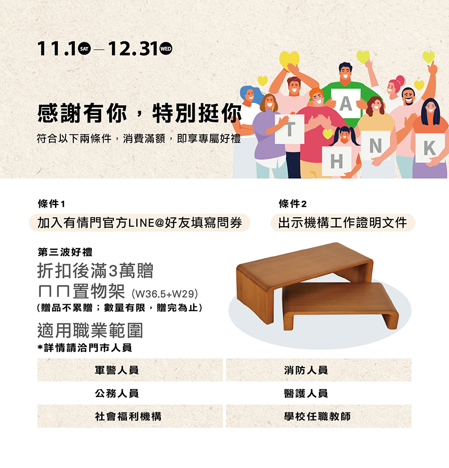 5.詳細內容請洽服務人員,有情門保有活動解釋權。