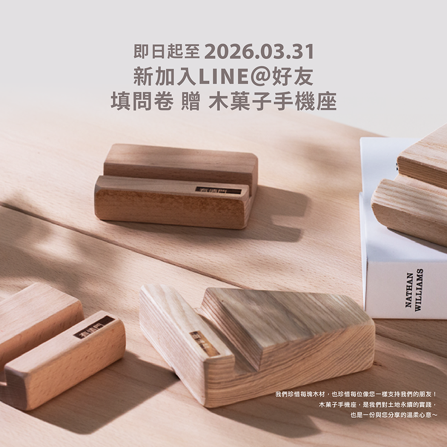 2.每個木菓子手機座造型紋理 獨一無二,隨機贈送恕不指定,贈品數量有限,贈完為止。
