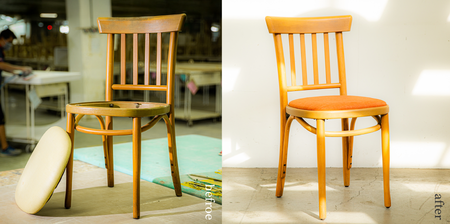 為了確保家具能長久使用,「有情門」的家具從設計之初就思考日後如何維修,目前每年送回維修整新的老家具已有上千件。曾有客人帶著十幾年前的已絕版椅子回來整修。他說:「我知道可以買新的,但家裡這張椅子,早就不只是椅子了。」那是他女兒小時候坐著練琴的記憶。這句話我們記到現在。