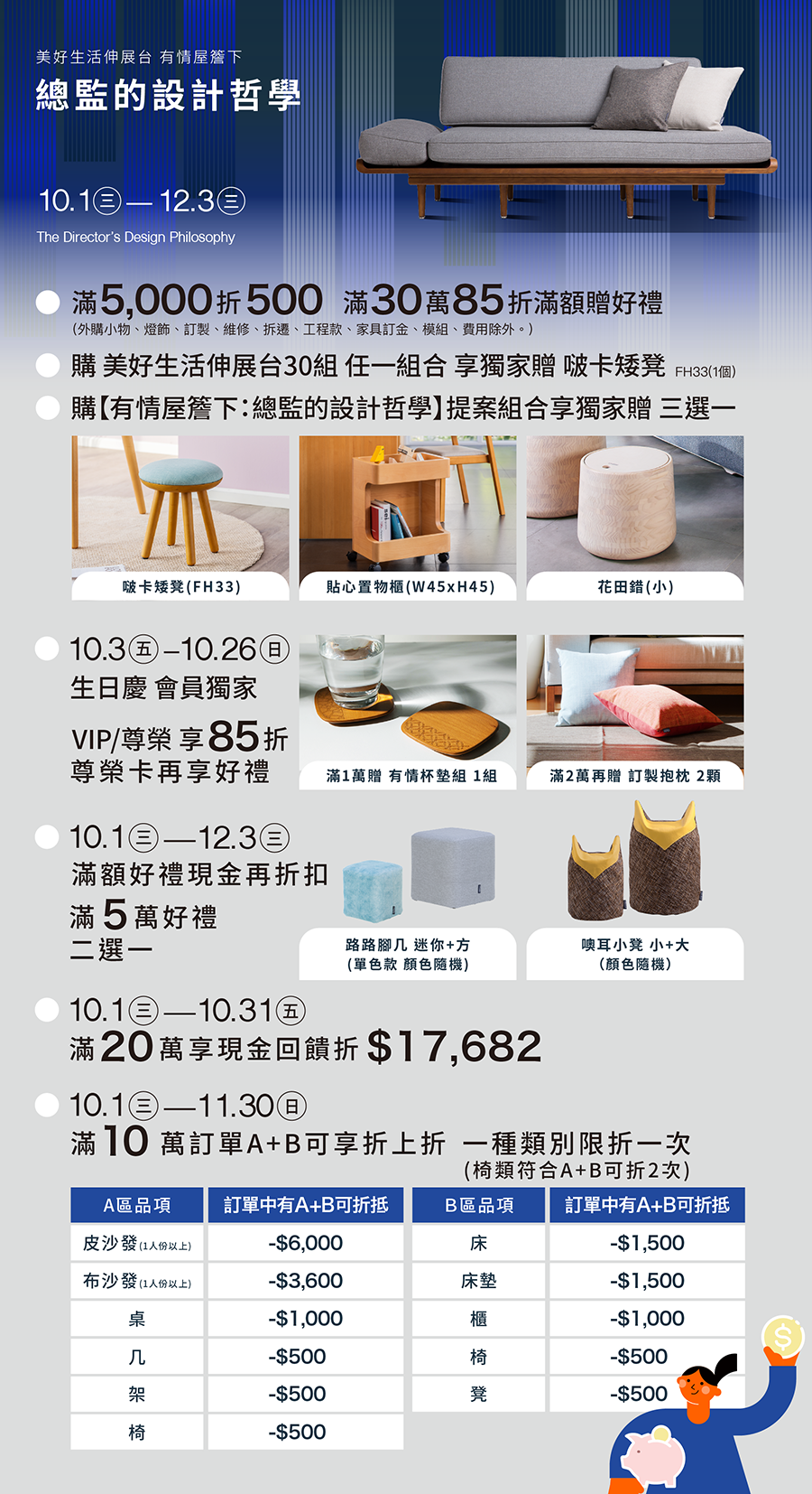 2.外購商品/燈飾/訂製/維修/拆遷/工程款/家具訂金/費用/樓層費,不可享折扣。