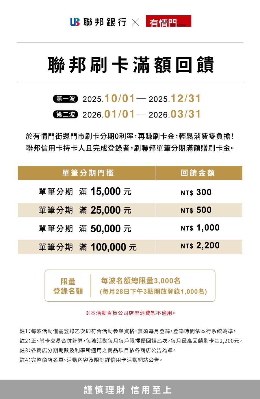 10.113/2/1起特約商店分期付款交易非一般消費,不提供現金、紅利、LINE POINTS等卡片原始回饋。