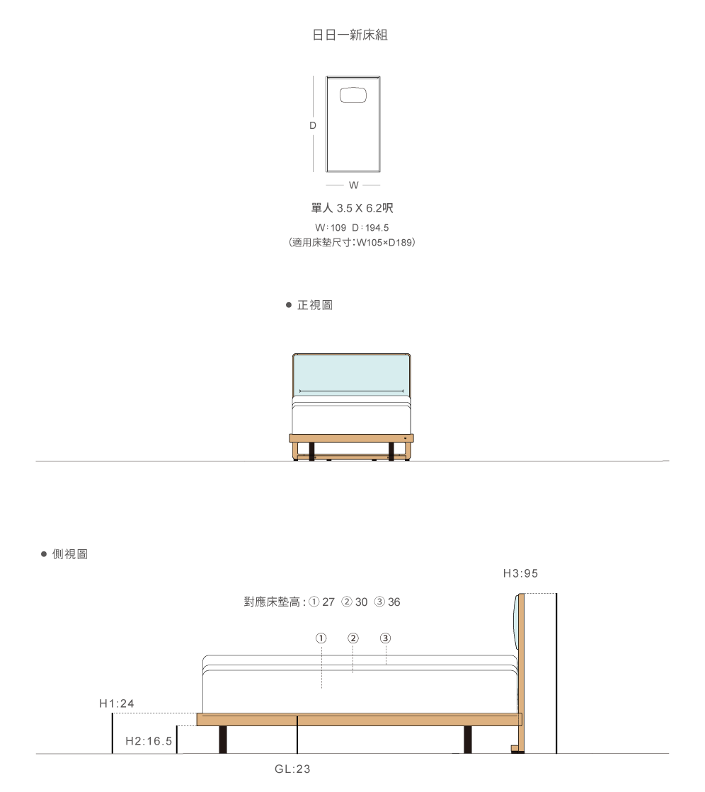 單人3.5呎/W109*D194.5*H95