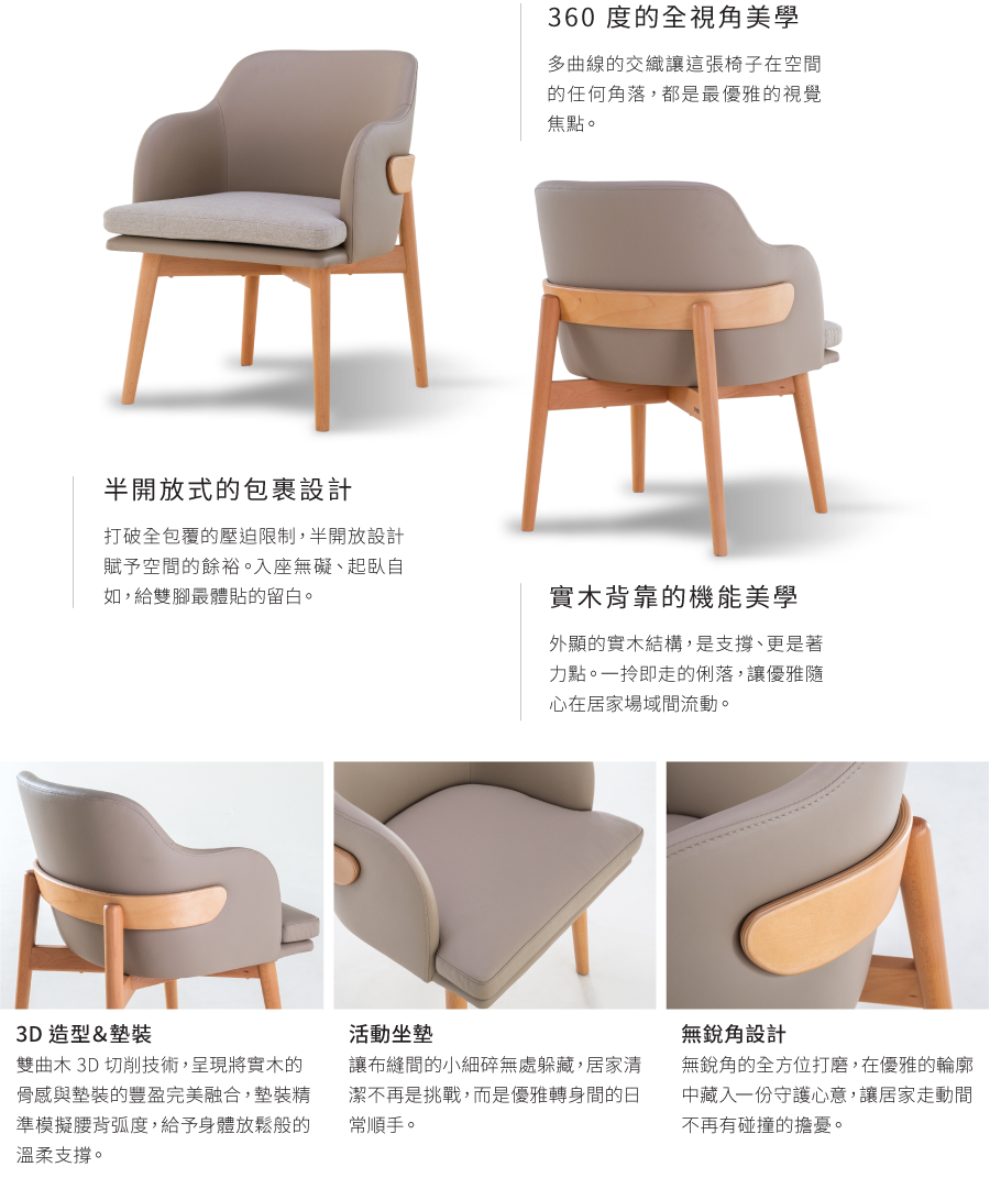 展現實木特調與曲線墊裝完美結合的精緻質感