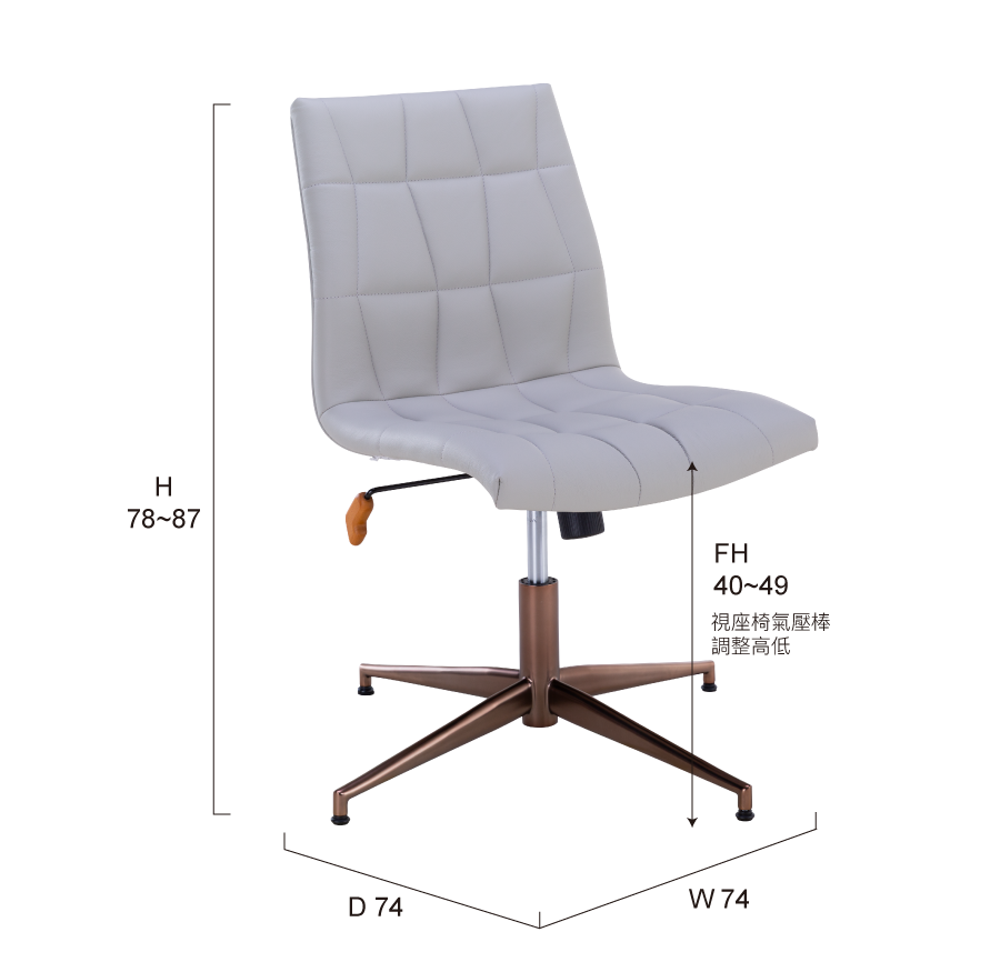 示意圖規格:刻幻塔吉單椅-牛皮款 W74 x D74 x FH40~49 cm