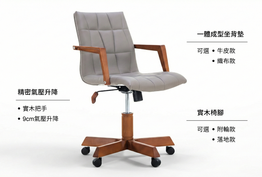 立體車縫線帶來更透氣的舒適體驗,巧妙地將人體工學隱於溫潤木質,完美平衡工作機能與居家美學