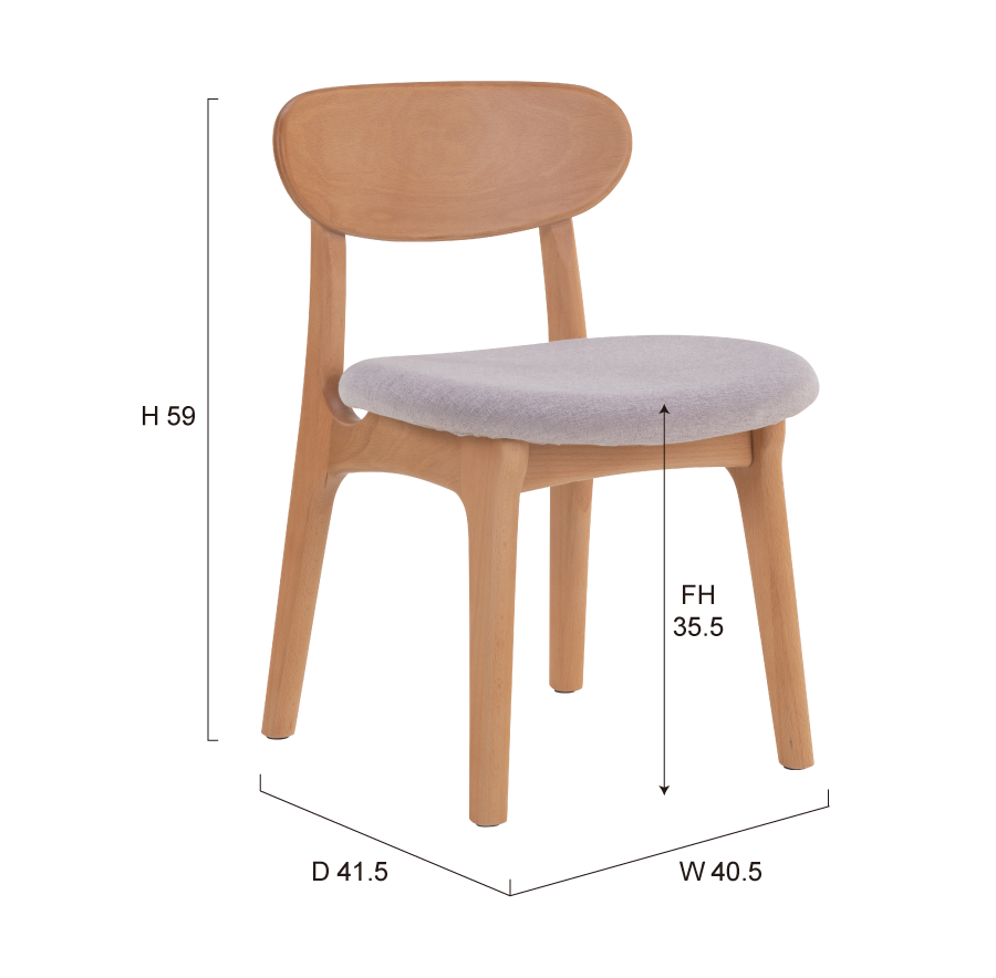 山毛櫸、曲木積層板、布、泡棉、絲棉