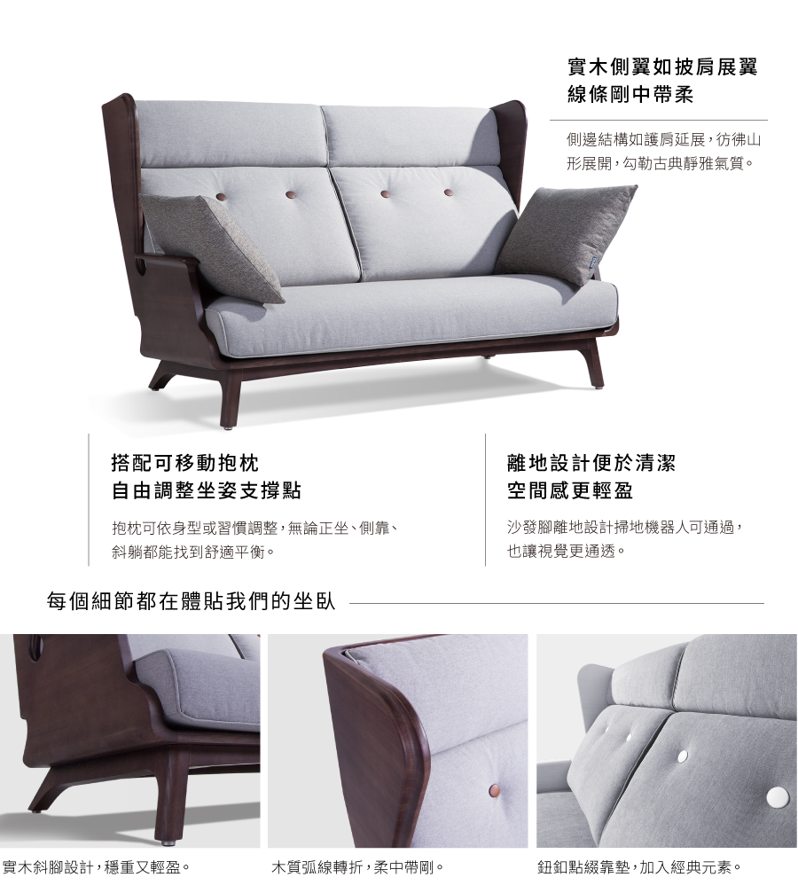 梣木實木、山毛櫸(木扣)、高密度泡棉、可拆式布套