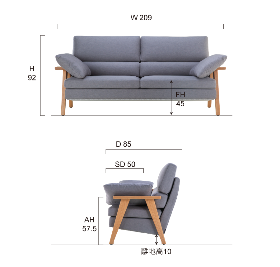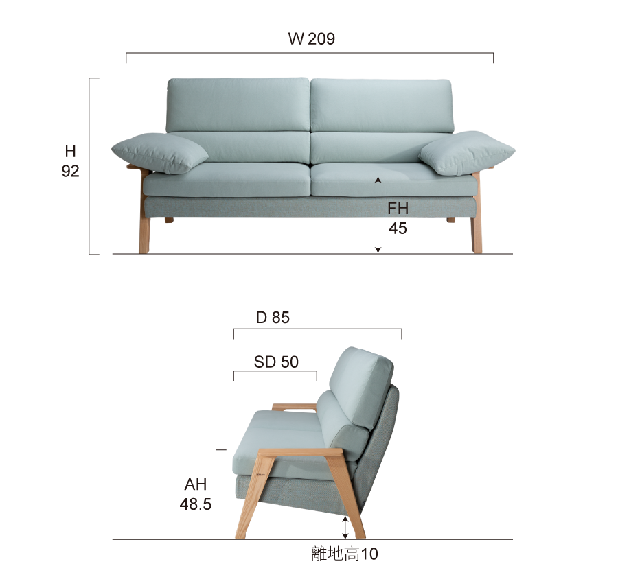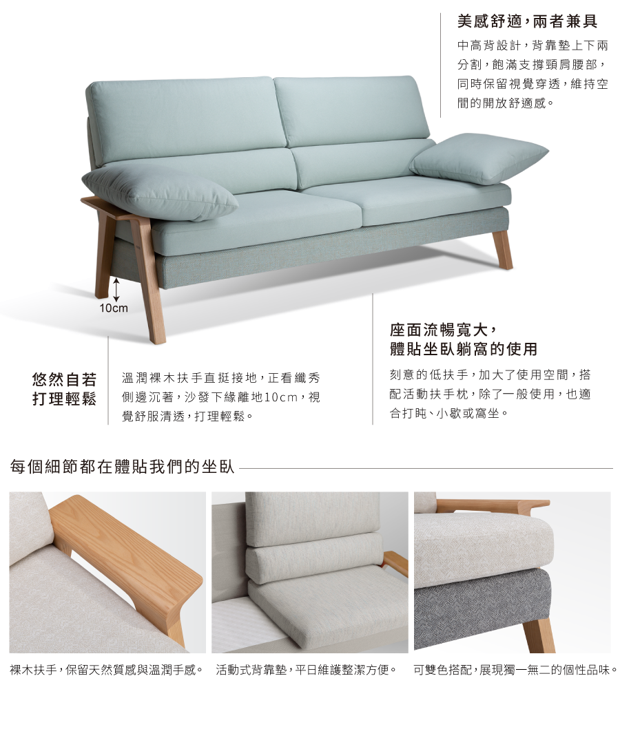 #藉由扶手枕﹐帶動清揚沙發風姿綽約的情韻。